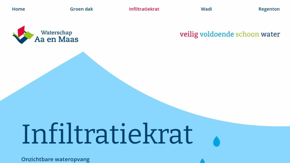 De gemeente Laarbeek hanteert een duurzaam beleid rondom het afvoeren van regenwater bij het splitsen van woningen. Voor Anita uit Aarle-Rixtel betekent dit dat ze bij haar verbouwing een watervriendelijke oplossing moest maken. Ze koos voor drie velden met infiltratiekratten. Hierin wordt regenwater opgevangen voor 5 appartementen. “We beseffen vaak niet hoe kostbaar water is. Met de infiltratiekratten gaan we hier beter mee om.”
